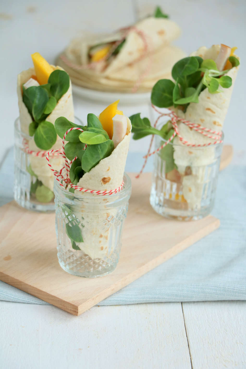 Zomer in je mond met deze wraps met kip en mango. De chilisaus geeft de wrap pit. Bij de kids kun je dit ook achterwege laten.