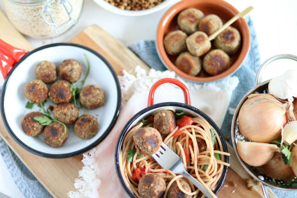 Tijdens de Week Zonder Vlees heb ik gemerkt dat mensen zoeken naar alternatieven voor vlees of vis. Wist je dat je heel eenvoudig zelf vegetarische balletjes kunt maken? Peulvruchten zijn hiervoor de ideale basis. Het fijne aan deze receptuur is dat je alle ingrediƫnten op voorraad kunt houden. Het enige dat je nodig hebt zijn linzen (uit blik of pot), ui, knoflook en havermout, vervolgens maken de specerijen het verschil.