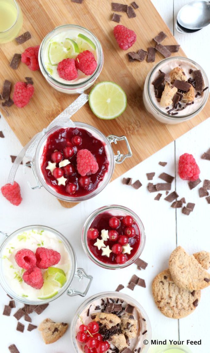 Yes, kom maar door met de feestdagen! Ik ben er klaar voor. Nou bijna dan. Maar ik heb alvast een te lekker nagerechtje gemaakt dat ik met je wil delen. Ja, nagerecht en geen toetje, want het is Kerst. Dan doen we een beetje sjieker. Maar deze no bake cheesecake in een glaasje met een bodem van chocoladekoekjes is echt super makkelijk om te maken. Ik bedacht drie varianten, namelijk frambozen, chocola ennn… limoncello. Zo staat er met het kerstdiner voor ieder wat wils op de tafel!