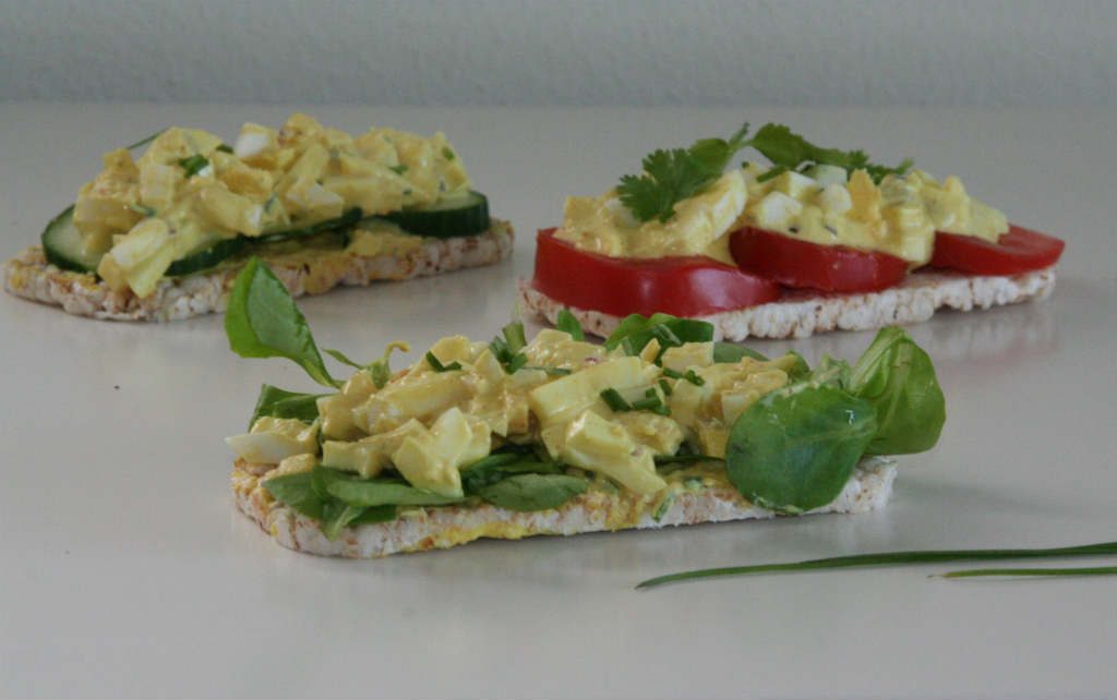 De eiersalade maak ik vaak uit de losse pols. Ik geef je een suggestie wat je er allemaal in kunt doen. Met eieren, yoghurt, mayo en zout en peper kom je al een heel eind. Het liefst eet ik dit elke dag, want ik ben gek op eitjes.
