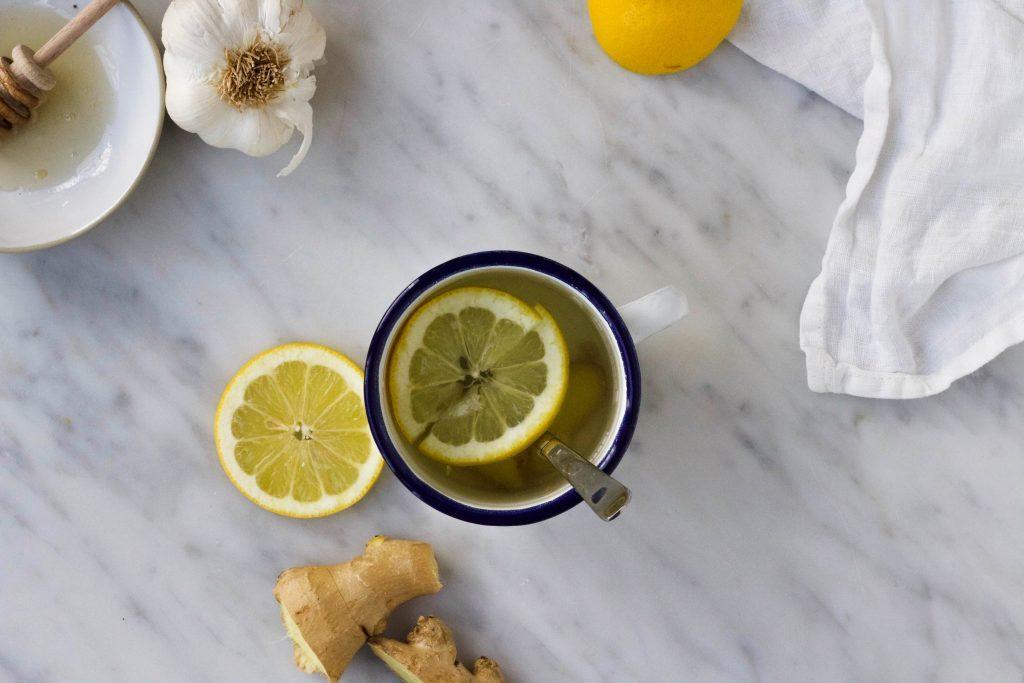 Citroen en de specerijen kurkuma en gember werken ontstekingsremmend en verhogen je weerstand. Vooral bij verkoudheid en keelpijn werken ze verlichtend en verzachtend. Maak daarom een lekker theetje met verse gember, kurkuma en citroen of voeg deze toe aan een juice of smoothie.