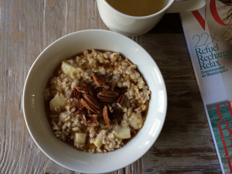 Havermout met appel en pecannoten Een klassieker die altijd lekker is! Deze havermout met appel en noten is als een appeltaartje als je uit je bed komt!