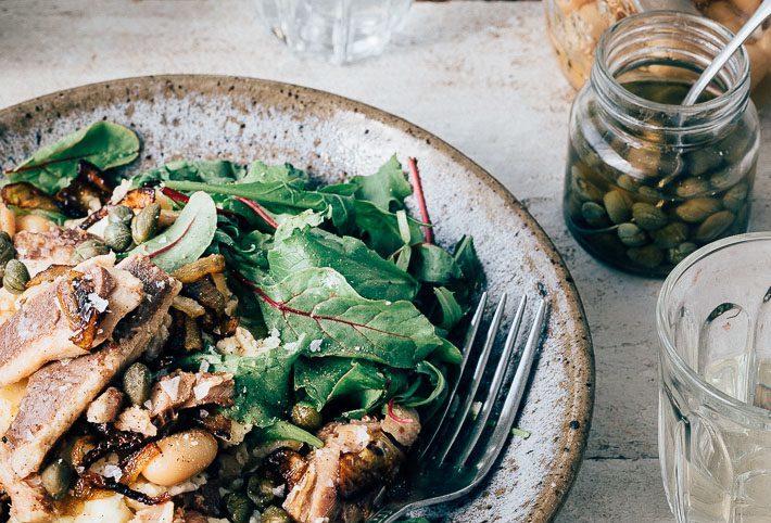 De aardappel stamppot zelf is lekker romig, niet alleen door de aardappels en crème fraîche. Maar ook door de witte bonen. Ik gebruikte overigens grote witte bonen, maar cannelini bonen zijn ook heel lekker in dit stamppotje. Voor wat knapperigheid moet je dus even naar de supermarkt of groenteboer. Want je garneert de stamppot met een flinke hand waterkers, dat smaakt lekker pittig en zorgt voor wat knapperigheid. Wanneer je niet aan waterkers kunt komen, dan kun je ook heel lekker een rucola mix gebruiken.