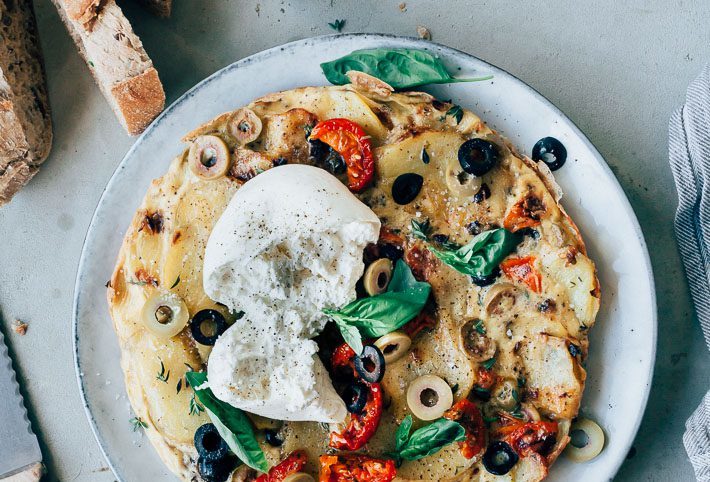 Het maken van een tortilla is een beetje als het maken van een frittata, restjes verwerken in een eigerecht. De uitdaging van zowel een aardappel tortilla als een frittata is niet het mengen van de ingrediënten maar het gaar krijgen van de onder- en bovenkant. Dat kun je op 2 manieren doen. De eerste is zoals hieronder omschreven. Je doet alle ingrediënten in een koekenpan, wanneer de onderkant gaar is kun je de tortilla een beetje losschudden in de pan. Wanneer de bovenkant dan gestold is kun je de tortilla op een bord storten en daarna van het bord weer in de pan laten glijden om de onderkant ook mooi te bakken. Of… je neemt een koekenpan die in de oven kan. Verwarmt de oven voor op 200 graden en zet wanneer het ei aan de bovenkant gestold is de aardappel tortilla met pan en al in de oven. En laat de oven de rest van het werk doen. Omdat ik zelf eigenlijk niet zo handig ben, maak ik een tortilla meestal af in de oven.