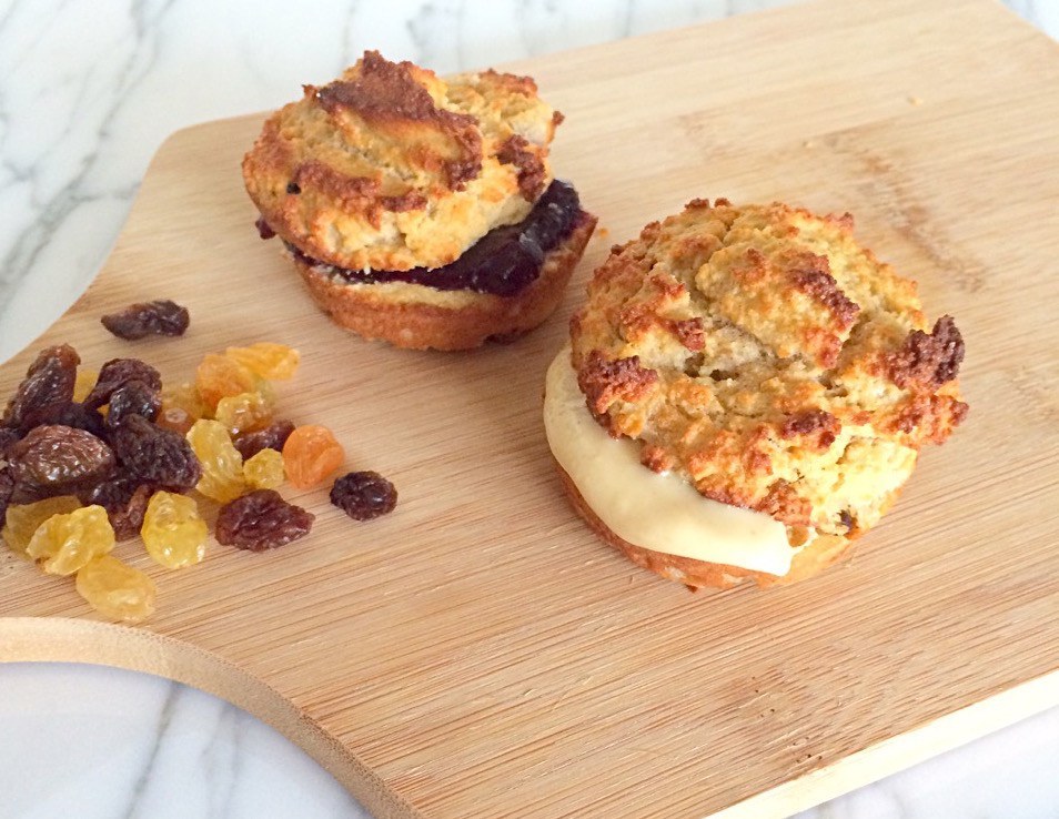 Goed, even Googlen dus naar een lekker paleo ontbijt. Ik kwam al snel op mijnpaleokeuken.nl, dat bomvol staat met super lekkere paleo recepten. Mijn oog viel direct op de snelle kaneel-rozijn ontbijt broodjes, waarvoor ik alle ingrediƫnten in huis had. Ik heb her en der wat aangepast en maakte een paar waanzinnig lekkere broodjes, die ik daarna nog een aantal keer gemaakt heb. Tip: duik op zondag even de keuken in (zonder baktijd kost het je nog geen kwartier) en maak meteen genoeg voor de hele week. Je kunt ze perfect invriezen, en als tussendoortjes doen ze het ook goed!