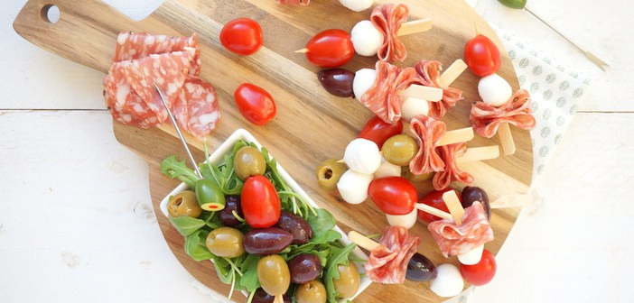 Het heerlijk avondje is bijna gekomen... En daarmee breekt ook de tijd aan van heel veel gezellige avondjes, met borrels en uitgebreid eten, en uiteraard met een goed glas wijn. Na morgen vieren we over 2 weken al Kerst met de hele familie en op Tweede Kerstdag komen we met het gezin bij elkaar. En tussendoor staan nog heel wat momenten van gezelligheid gepland met lieve vrienden. Oftewel, december gaat een echte eetmaand worden. Heerlijk, ik heb er al zin in! Om eens wat anders op tafel te zetten bij de borrel dan de standaard stokbrood met smeersels, maakte ik laatst al bij een feestje deze antipasti prikkers. Het idee is natuurlijk super simpel, maar toch deel ik het met je!