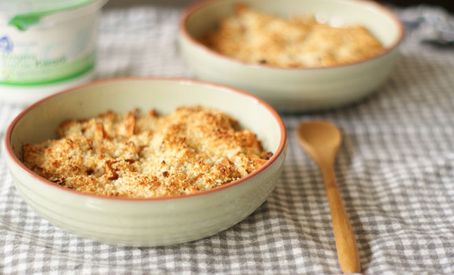 Tegenwoordig probeer ik in de ochtend koolhydraten zoveel mogelijk te mijden omdat ik dit relatief gezien de makkelijkste maaltijd vind om dat te doen. Nu ben je kwark na een aantal dagen ook wel zat en heb je ook niet elke dag zin om bananenpannenkoeken te bakken. Dan komt dus deze apple crumble met amandelmeel om de hoek kijken! In de avond maak je alles vast klaar, "s ochtends voordat je je gaat aankleden zet je hem in de oven en als je klaar bent, ruikt je huis naar appeltaart en kun jij genieten van een warm appel ontbijtje.