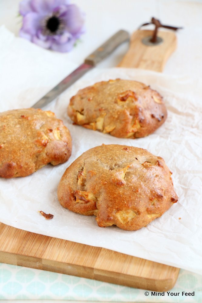 Ik heb de smaak wel weer te pakken hoor, zo na de vakantie! De eerste paar dagen was het even een beetje chaotisch, maar dat was mijn eigen schuld. Want ik heb dus echt 3 weken lang helemaal niets gedaan. Echt niets, ook wel eens lekker. En nodig, dat was het ook. En ja, dan weet je gewoon dat het na de vakantie even aanpoten is. Niet alleen moest het gezin weer opgestart worden, ook alle werkzaamheden rondom mijn blog moest ik weer oppakken. Meestal als ik zoveel tegelijk moet doen, ga ik bakken. Dat is rustgevend, en dan kan ik alles even op een rij zetten. Ik maakte deze appel kaneel broodjes, lekker als ontbijtje of voor tussendoor!