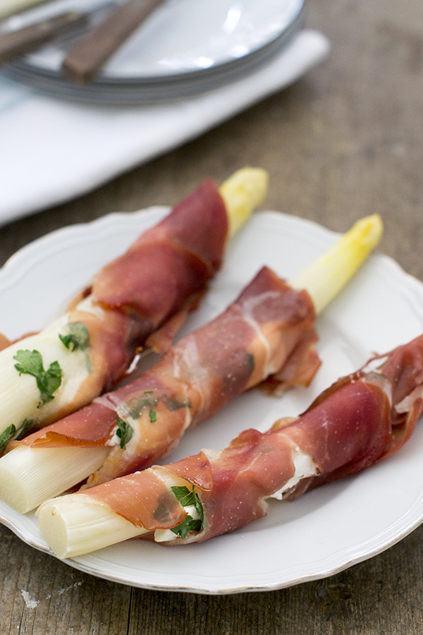 Ik had nog een aantal witte asperges over nadat ik dit gerecht met pasta en zalm had gemaakt. Zonde om weg te gooien dus ik maakte er een lekker receptje mee. En dat was zo lekker dat ik snel een foto van maakte voor ze in mijn mond verdwenen, zodat ik het receptje ook met jullie kan delen.