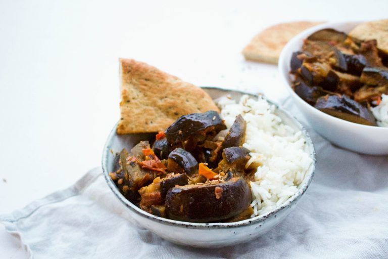 Op dit moment ben ik aan het backpacken in Sri Lanka; het land van de curry’s! De Indiase keuken is een van mijn favoriete keukens. Heerlijke, geurige curry’s. Een daarvan is deze aubergine curry, genaamd Baingan Bharta. Een curry op basis van aubergine en garam massala.