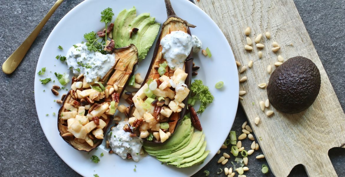 Aubergine uit de oven met halloumi crumble