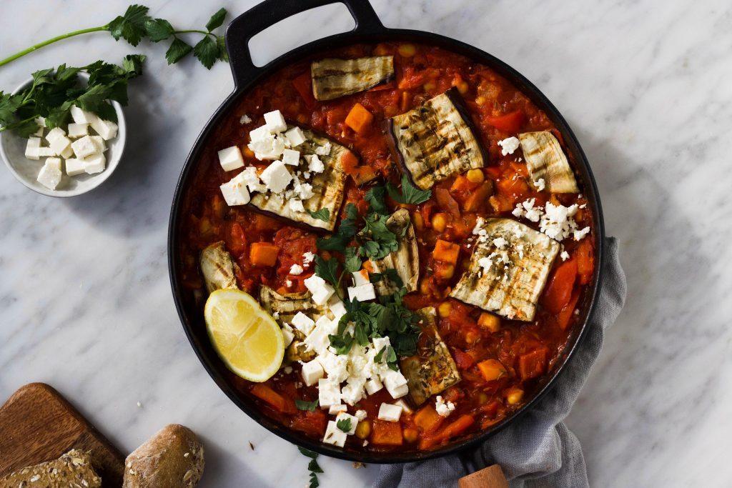 Door de aubergine te grillen krijgt deze extra veel smaak. De harissa in het gerecht zorgt voor een heerlijk smaak en maakt het gerecht een béétje pittig. De feta maakt het een beetje romig. Serveer het gerecht eventueel met rijst of naanbrood.