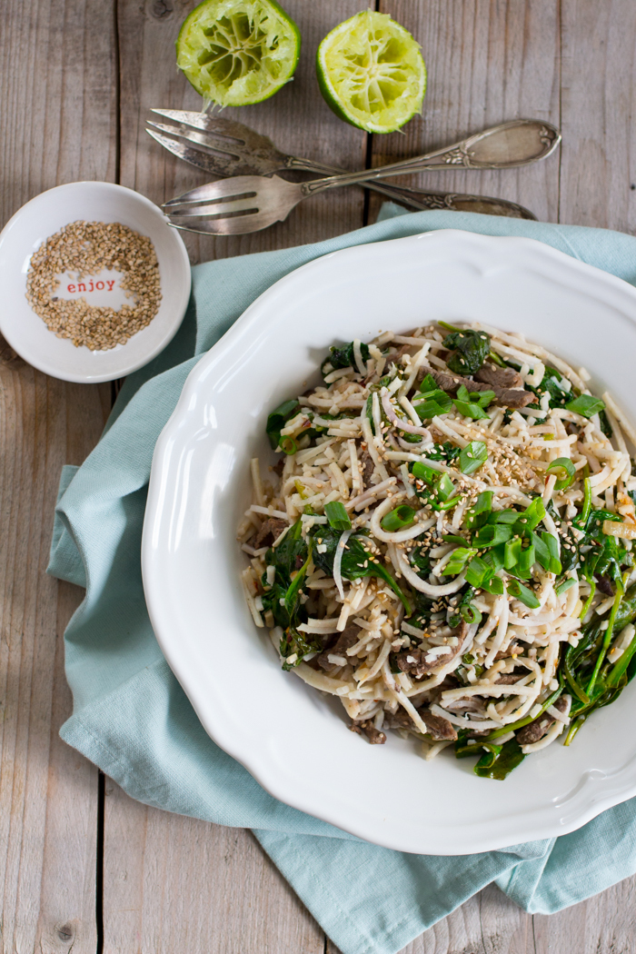 Zo'n grote taro leent zich uitstekend voor de spiraalsnijder: je kunt er een heerlijk noodle-gerecht mee maken. De structuur is geweldig en aangezien de taro alle smaken in zich op neemt kun je er alle kanten mee op. Een ander voordeel is dat het ook nog eens heel makkelijk te bereiden is (echt waar: makkelijker dan "gewone' noodles of spaghetti).