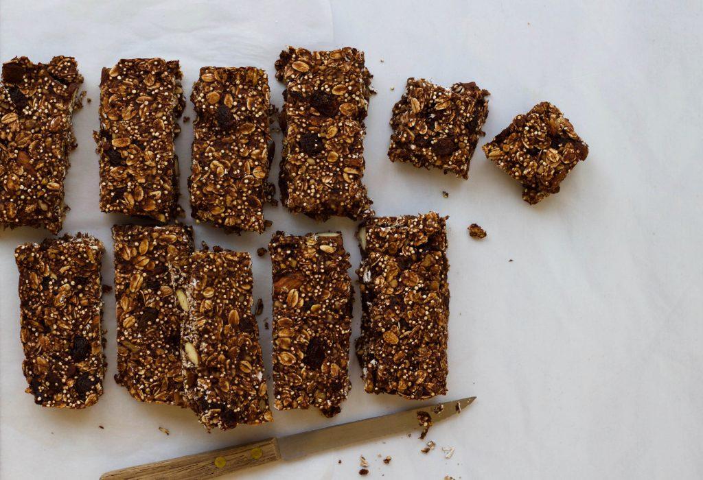 Deze heerlijke repen zijn makkelijk en snel gemaakt en bak je in de oven gaar. Door de gebakken quinoa worden de repen lekker knapperig. Ze zijn zoet door de banaan en zitten vol eiwitten door de quinoa en noten. En ja de cacao… alles is lekkerder met een beetje chocolade!