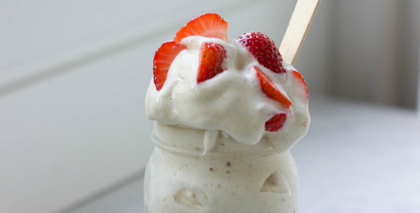 Sanne: "Op zoek naar een lekker en voedzaam ontbijtje? Zoek dan niet verder! Vandaag staat er namelijk bananenijs op het menu. En niet zomaar bananenijs, nee bananenijs met amandel en dadel! Super makkelijk te maken. Echt! Binnen 3 minuten ben jij aan het genieten! En kan je hier geen genoeg van krijgen, geen probleem, eet maar door, dit ijs is namelijk guiltfree!