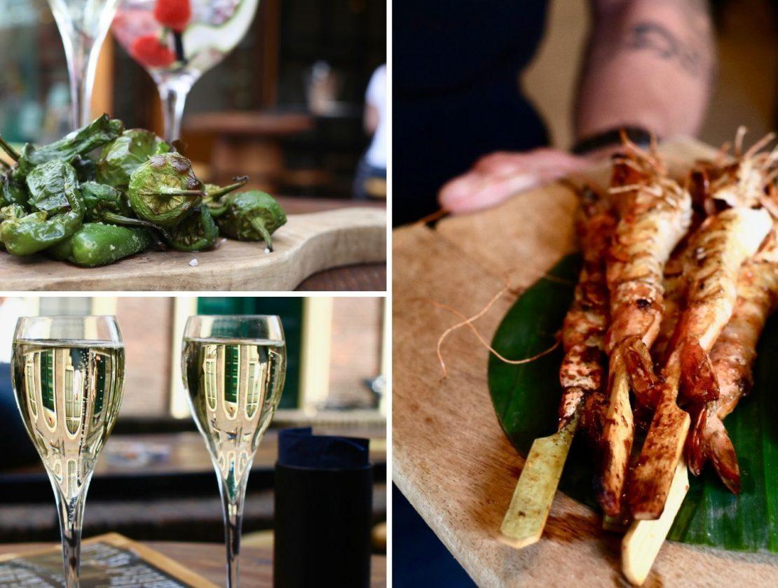 Op de menukaart vind je onder andere verse calamaris met citroenmayonaise, gegrilde asperges met serranoham, grote gamba’s met gerookt paprikapoeder van de grill, camembert uit de oven, verse vijgen met roquefort en (hier bestellen Mike en ik altijd steevast een portie van) pimientos de padrón. Dit zijn gefrituurde Spaanse pepers. Geen zorgen, ze zijn niet heet ;) Ze maken een beetje paprika-achtig en zijn top in combinatie met zeezout. Verder hebben ze naast cava en champagne ook diverse wijnen, sangria, gin & tonic’s en cocktails. Ook veel non alcoholische keuzes trouwens! We probeerden voor de grap een alcoholvrije cava en die was serieus goed, haha.
