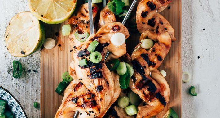 Natuurlijk hoef je de kipspiesjes niet perse op de bbq te bereiden. Je kunt ze ook in je grillpan maken. En wanneer je gewoon zin hebt in een lekker stukje kip kun je ook prima de stukjes zonder ze op een spiesje te rijgen in een pan bakken. De kipspiesjes kun je namelijk ook heel lekker met gestoomde rijst en Aziatische groenten, zoals paksoi of bimi eten. Vooral doen! Het gaat in huis (of in de tuin) in ieder geval heerlijk Aziatisch ruiken.