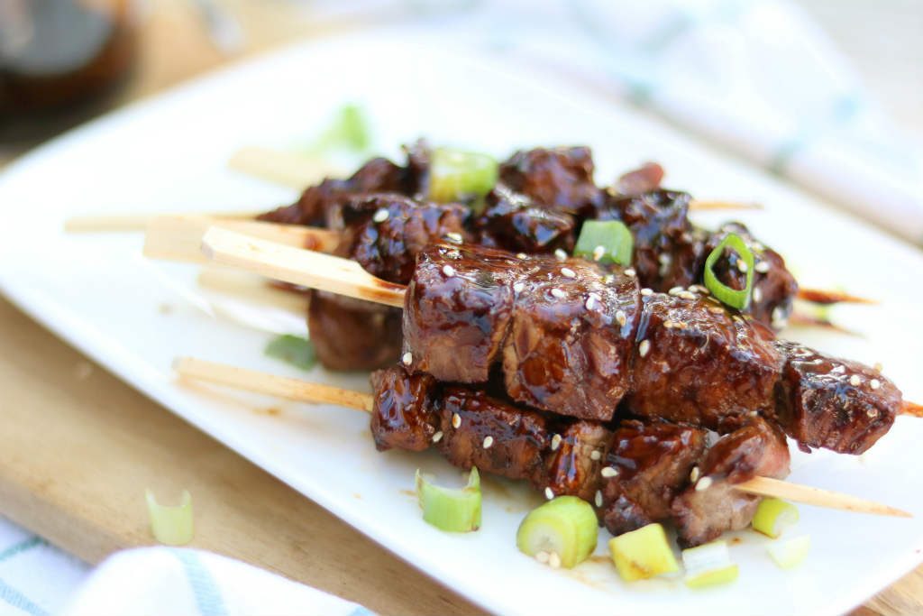 Samenwerking. Wat een genot zeg het zonnetje van de afgelopen weken. Laten we hopen dat dit een voorbode is van een heerlijke zomer. Lekker buiten eten, zodat de avond voelt als een minivakantie. Dit jaar geef ik jullie een kijkje in onze zomer maaltijden. De ene keer gooi ik een aantal ingrediënten in een maaltijd salade, de andere keer staat de barbecue aan met groente en vlees. De marinade voor het vleesmaak je makkelijk zelf. De eerste in de rij zijn deze beef teriyaki spiesjes.