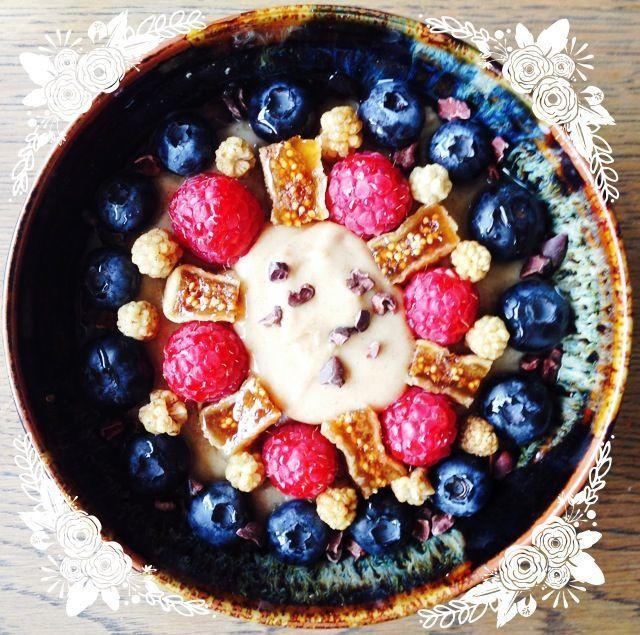 Maar we zijn er nog niet! Lucuma poeder is namelijk niet het enige superfood wondertje in dit kommetje havermout. Ik heb ook verschillende besjes gebruikt, blauwe bessen, frambozen en moerbei bessen. Deze gedroogde superfood besjes zijn wat minder bekent, maar absoluut de moeite waard om ze eens te proberen. Moerbei bessen zijn namelijk een van mijn favoriete snacks als ik zin heb in iets zoets. Tegenwoordig verkopen ze grote hoeveelheden hiervan gewoon bij de groenteboer, en vaak zijn ze daar ook nog eens stukken goedkoper.