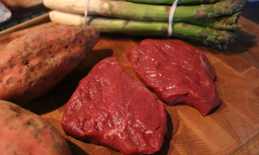Voor dit recept ging ik aan de slag met biefstuk, asperges en zoete aardappel. Het vlees komt van de Lindenhoff, die speciaal voor Pasen een aantal producten geselecteerd hebben waarmee je een heerlijk Paasontbijt, -lunch of -diner maakt.