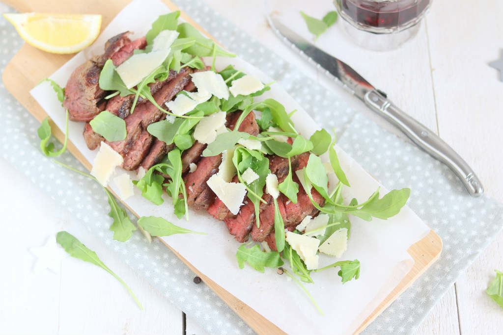 Zo het is tijd voor één van de twee hoofdgerechten van mijn kerstrecepten van dit jaar. Ik zocht een recept dat iedereen lust, dat zorgt voor “oeh en aah” aan tafel én dat snel klaar is. Het is gelukt met deze biefstuk tagliata met rucola en Parmezaanse kaas. Met een minuut of 15 – 20 staat dit pronkstuk op tafel.