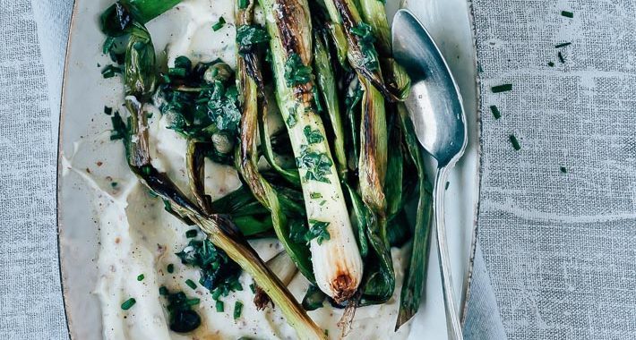 De bloemkoolpuree maak je echt supersnel. Je kookt de bloemkool in gezouten water voor 15 minuutjes. Daarna pureer je hem met de staafmixer en maakt de bloemkoolpuree lekker smeuïg met de crème fraîche en brengt de puree op smaak met mosterd. De bosuitjes bak of grill je even met wat boter in de pan tot dat ze mooi bruin worden. Hele bosuitjes! Dus niet in stukjes. Bosuitjes worden juist heel lekker op deze manier, net als prei. Ook heel lekker op deze manier. Als extraatje maak je met het bakvocht van de bosuitjes een salsaverde met de verse kruiden, kappertjes en olijven.