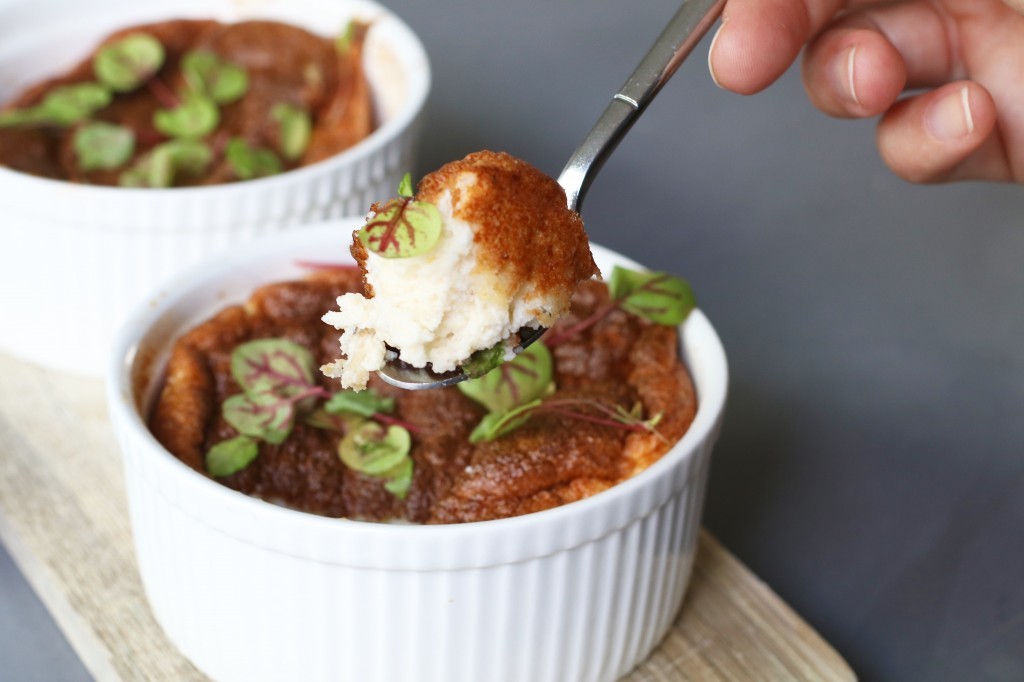 Foodies, Winelife, Delicious, Elle Eten, ik verslind ze allemaal want ik ben gek op elk magazine dat ook maar iets met eten te maken heeft. Voor de laatste restauranttrends en meer culinaire gerechten lees ik het magazine van de Sligro en daar staat echt zooooveel lekkers in.. Mijn handen jeuken altijd enorm om aan de slag te gaan na een paar bladzijdes. In de nieuwste editie genaamd boter, kaas & eieren zag ik een super lekker recept staan voor bloemkoolsoufflé met geitenkaas. Ik ben meteen aan de slag gegaan en dit is het resultaat! Oké, hij is iets minder fluffy geworden maar de smaak was heerlijk ;) Bedankt Sligro voor het recept!