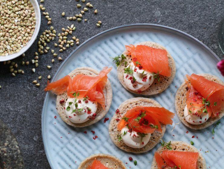 Dit heb je nodig voor deze koekweit blini’s met roomkaas en zalm / 16 stuks