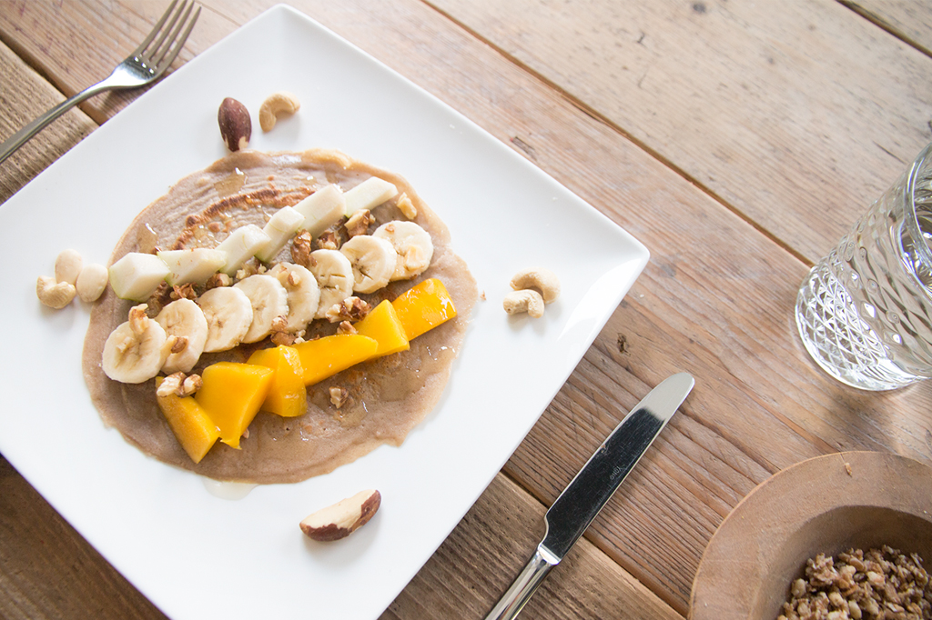 Daarom besloot ik vorige week dat het hoog tijd werd om te werken aan dit goede voornemen! Ik maakte een verantwoorde boekweitmeel pannenkoek en versierde deze met vers fruit en granola. Super lekker en een absolute motivatie om vaker dit soort lekkere lunches te maken. Deze pannenkoek kun je natuurlijk ook als ontbijt maken voor een goede start van je dag!