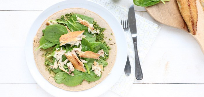 Ik ben dol op wraps, ze zijn makkelijk te maken en een beetje meel heb ik altijd wel in huis. De ene keer gebruik ik gewone bloem, soms maak ik ze met spelt, en deze keer koos ik voor boekweitmeel. Ik ging al eerder aan de slag met boekweitwraps, maar wilde ze graag nog iets luchtiger maken. Ik besloot daarom deze keer iets te variƫren met de verhoudingen, en je ook maar gelijk een suggestie te geven hoe je ze lekker kunt beleggen. Ik had het zelf ook niet helemaal verwacht, maar de groene pesto combineert echt super met de makreel... De pesto was nog over van de workshop die ik dit weekend gaf - heb je gezien dat er nieuwe data online staan! - en gaat sindsdien echt overal op, over, en doorheen. Met pesto kun je namelijk bijna nooit fout gaan, en het voegt zoveel smaak toe!