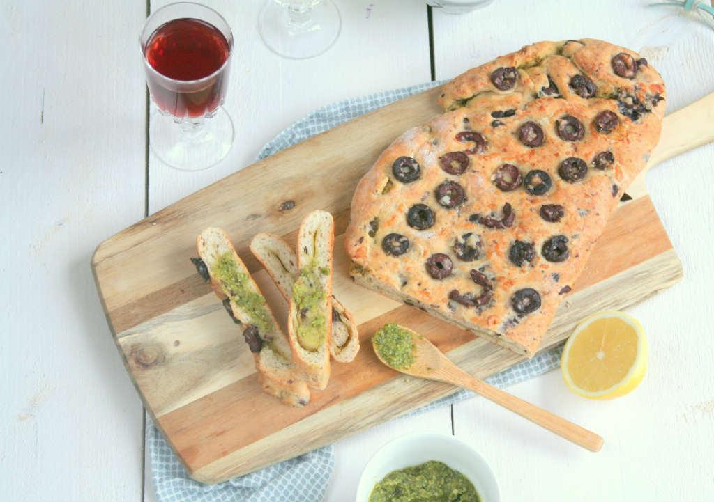 Borrelbrood met pesto en olijven