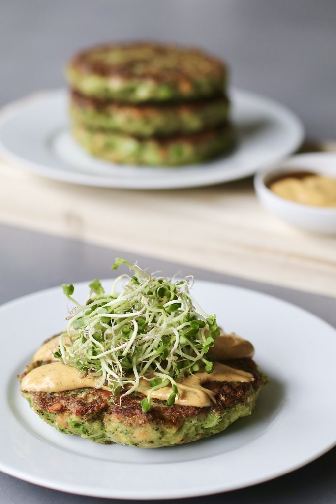 Jullie vroegen massaal om meer vegetarische burgers (niet gek, want ó wat zijn ze lekker!) dus bij deze een nieuw recept voor een heerlijke en gezonde burger. Dit keer gemaakt van broccoli, kikkererwten en met een pittige mayo on the side. Of erop. Wat jij wil! Eet deze voedzame burger op een broodje als lunch of als avondeten met gebakken zoete aardappelfrieten en een simpele groene salade. Zei ik al dat gezond eten echt héél lekker kan zijn :D