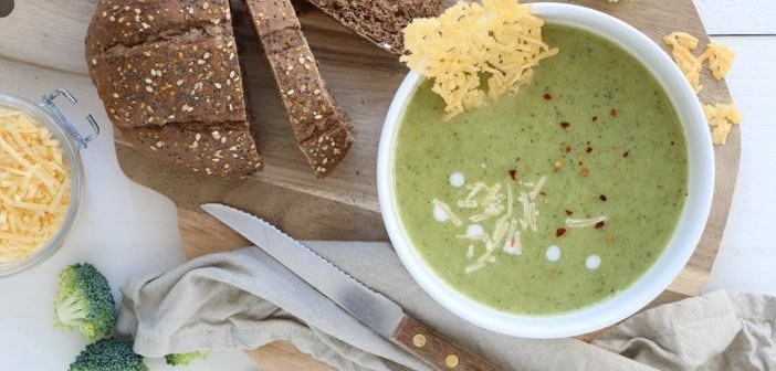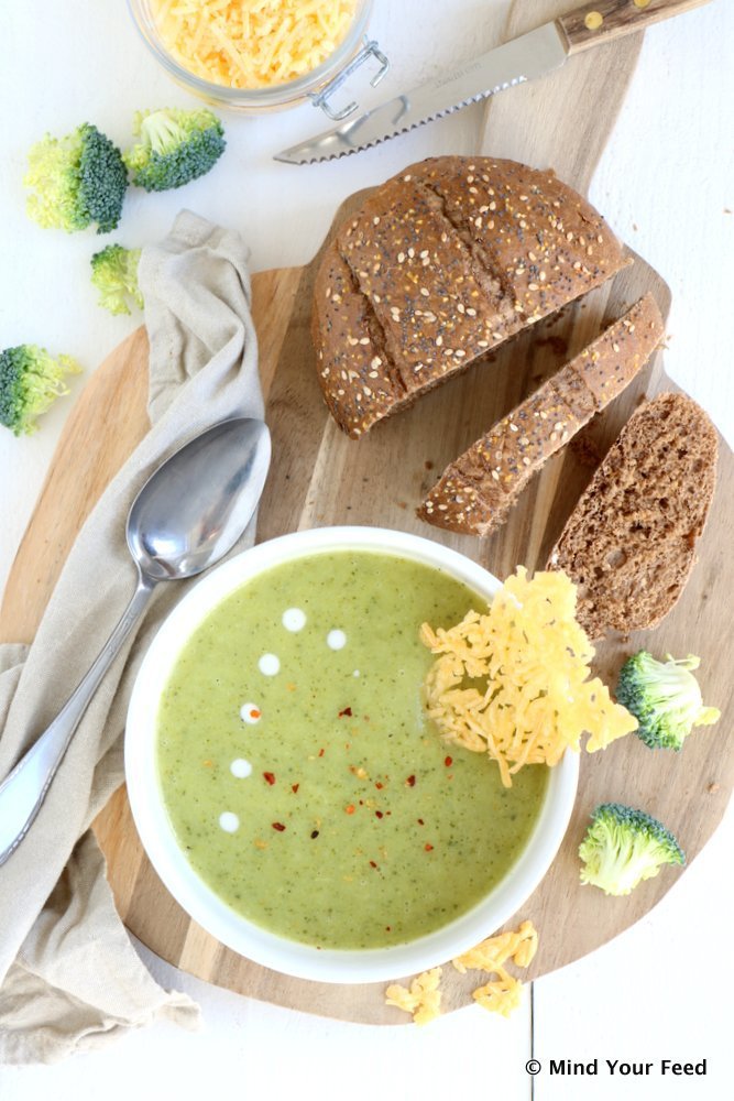 Soep, dat is altijd goed hier in huis! Of in elk geval voor 3 van de 4. Op de een of andere manier weigert mijn jongste dochter al sinds ze heel klein is om soep te eten. Vreemd vind ik dat, maar ik blijf het gewoon steeds op tafel zetten. Omdat ik vind dat dit de makkelijkste manier is om restjes groenten te verwerken én om een portie groenten binnen te krijgen. En dat is met deze broccoli courgettesoep wel heel letterlijk zo, want kijk eens naar die prachtige groene kleur. De kaascrackertjes maak je makkelijk zelf. Maar als dat teveel tijd kost, is wat losse kaas over dit soepje ook erg lekker!