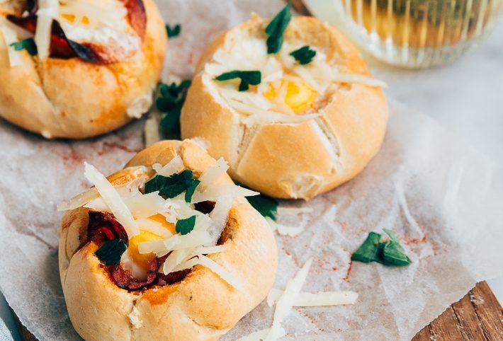 Ik maak deze broodjes in de Philips Airfryer XXL (Avance collection). De laatste tijd staat hij bijna standaard op het aanrecht. Voor snackjes voor bij de vrijdagmiddagborrel tot het snel afbakken van aardappeltjes, broodjes of het bereiden van een complete maaltijd. Hij is supergroot en daardoor geschikt voor het hele gezin (er kunnen 6 porties friet in). Maar het belangrijkste voordeel is dat je de Airfryer niet hoeft voor te verwarmen en daardoor is alles heel snel klaar. Door de Twin TurboStar technologie verwijdert hij overtollig vet, dit wordt opgevangen in de lekbak onderin de Airfryer. Dus schoonmaken is ook zo gepiept.