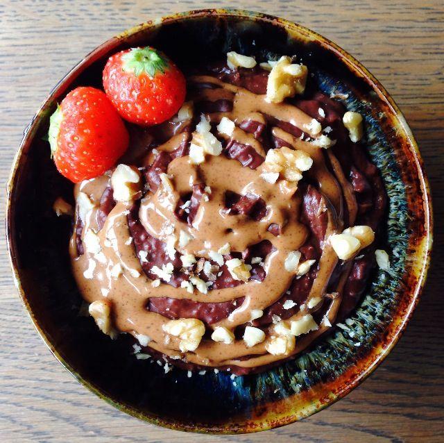 Dit ontbijt is echt net een toetje. Laatst heb ik gezonde brownies gebakken voor moederdag en ze waren zoooo lekker! En gluten vrij, suikervrij en vegan! Dus toen ik er inmiddels al drie had gehad nadat ik de hele beslag kom ook al had uitgelikt en er werkelijk waar niet met m'n pootjes vanaf kon blijven, kwam ik met dit idee: Brownie Havermout! Ik heb het recept voor de brownies erbij gepakt, beetje creatief gedacht en voilĂ , een kommetje ontbijt pap die smaakt naar het brownie beslag. Voor de echte die hard choco fans onder ons is dit een must try recept. En zo heb je gelijk s'ochtends al je chocolate fix gehad hihi.