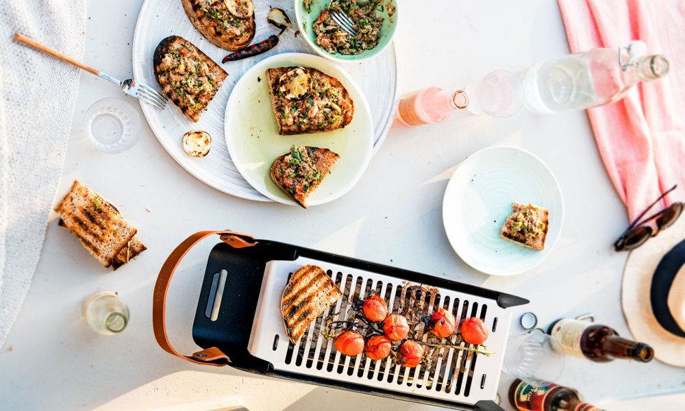 Bruschetta kan je in principe mega simpel maken: een stukje brood even roosteren, wat tomatenblokjes in olie erop en voor de kleur wat basilicum. Hartstikke lekker, maar wanneer je er net even wat meer van maakt heb je er ook nog meer plezier van. Je kunt het natuurlijk maken op de BBQ (in de tuin of in het park), maar mocht het wat minder lekker weer zijn kan je ook gewoon gebruik maken van de grillpan. Enjoy!