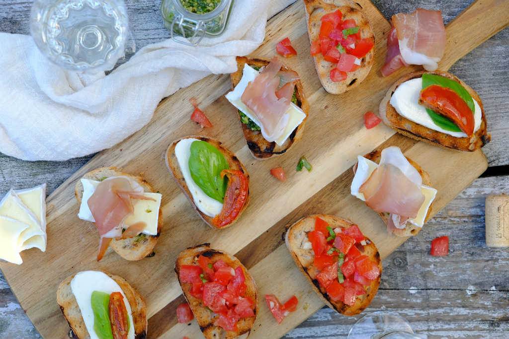 Houd je niet te strak vast aan de hoeveelheden. Kijk nog even wat je op voorraad hebt en maak hier gebruik van. De basis van de bruschetta’s is natuurlijk oud brood. Rooster dit op een grillplaat of bbq en dan kan het feestje van beleggen beginnen.