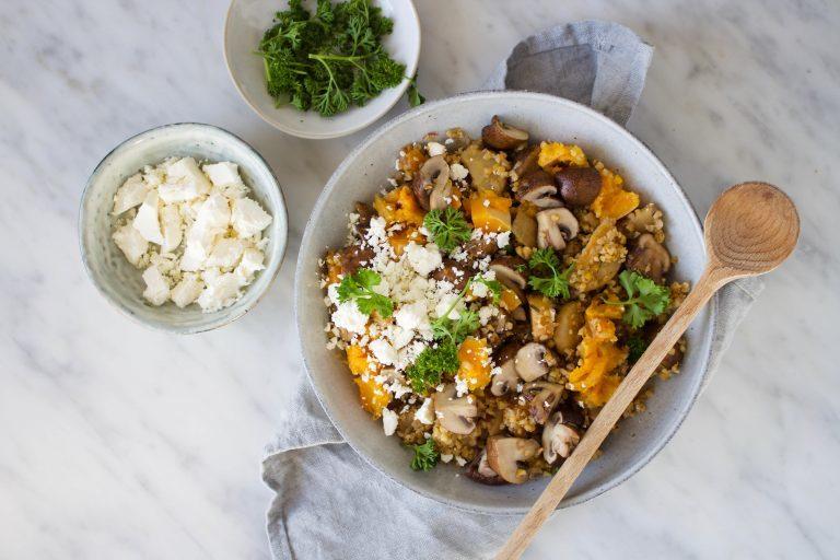 Wat is de herfst toch fijn met al die heerlijke herfstgroenten. De combinatie van pompoen, champignons en pastinaak is zo lekker!