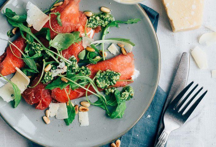 Toch is dit makkelijke kerstmenu heel feestelijk. We beginnen met deze carpaccio rolletjes, als hoofdgerecht serveer ik een zalm en croûte. Klassiek maar dan in een 2018 jasje. Een impressive kerstgerecht dat binnen 5 minuten klaar is (los van de oventijd). En als nagerecht een feestelijke kokos panna cotta in een mooi glaasje. Met passievrucht want dat staat zo gezellig. Kortom een heerlijk 3 gangen menu, dat qua voorbereiding en uitvoering heel goed te doen is.