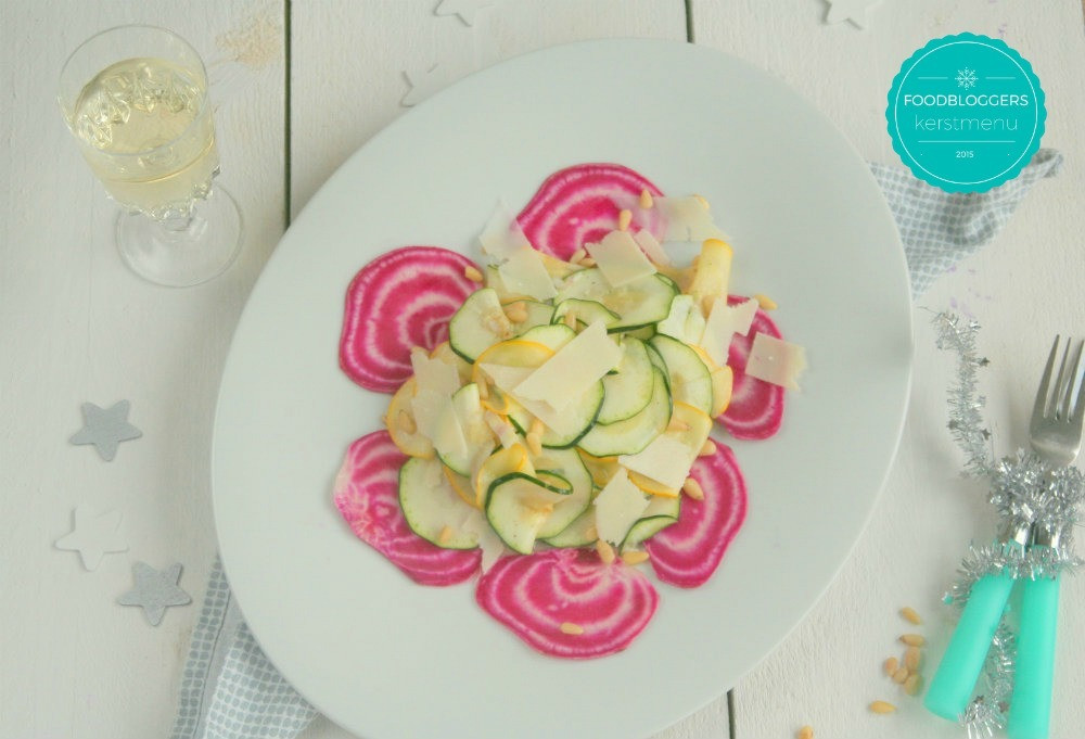 Vandaag deel ik niet zomaar een gerecht. De carpaccio van courgette en biet met Parmezaanse kaas is onderdeel van het bloggersmenu van Suzanne, Reny, Bo, Betty en ik.