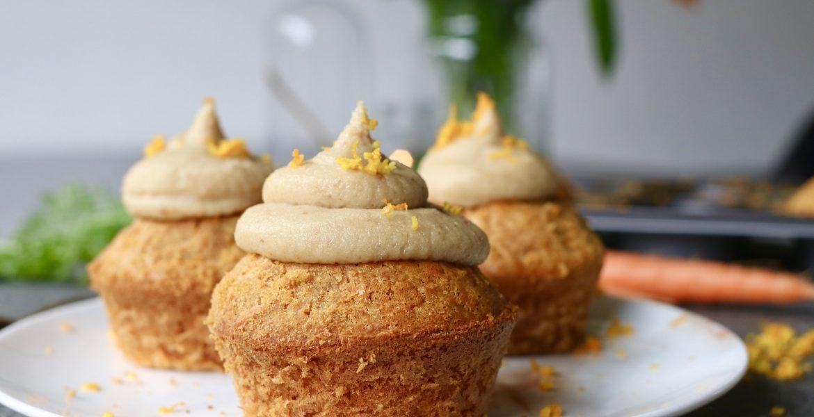 Morgen is het Koningsdag en om een beetje in de stemming te komen ging ik aan de slag met een oranje bakrecept. Bij oranje dacht ik meteen aan wortels en wat kun je nu beter maken van wortels dan een heeeerlijke carrot cake. Kleine carrot cakejes in dit geval, voor bij de koffie of als gezond tussendoortje. Ze zijn namelijk gezoet met honing en dadels en dus zonder bergen geraffineerde suiker. Omdat ik niet zo lekker ga op gluten gebruikte ik glutenvrij bakmeel, maar wanneer je hier niet gevoelig voor bent kun je ook gewoon meel gebruiken. Laat de cashewfrosting niet achterwege want dit maakt de cakejes echt helemaal af. Je maakt hem simpelweg van geweekte rauwe cashews en hij smaakt ook fantastisch op deze pindakaas vanille cake!