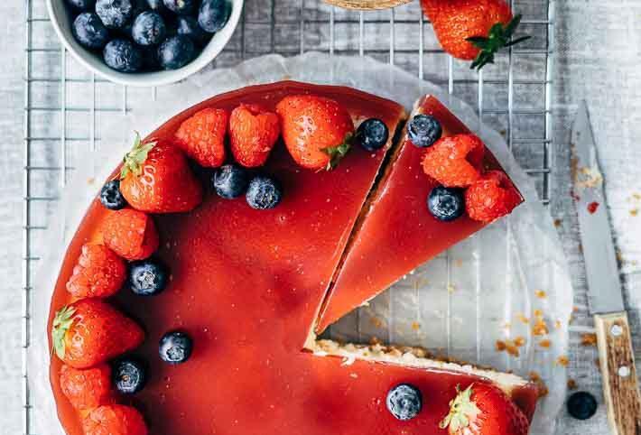 Het maken van een cheesecake kost je niet veel tijd, daarom is hij denk ook heel erg geliefd. Naast de lekkere smaak natuurlijk. Maar je hebt wel geduld nodig. De cheesecake moet een uur in de oven. Daarna moet hij afkoelen om stevig te worden en om de jelly er op te maken. Vervolgens moet de jelly ook weer afkoelen en stevig worden. Geen last minute taart dus. En ga hem nou ook niet last minute maken. Daar word je echt heel verdrietig van, ik heb het vaak genoeg meegemaakt. Het resulteerde in een half ingestorte niet mooi stevige taart op feestjes en na afloop van etentjes. Kortom maak hem wanneer je de tijd en vooral het geduld hebt, je wordt er in ieder geval rijkelijk voor beloond! Qua smaak (en hij ziet er natuurlijk ook prachtig uit!)