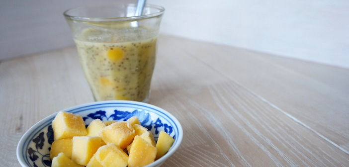 Zo fijn als je in de ochtend gewoon je ontbijt uit de koelkast kunt pakken! In een drukke ochtendspits, waarin kinderen aangekleed moeten worden en waarin er ook nog ontbeten moet worden, is het handig als je goed voorbereid bent. Ik ben echt een enorme fan van mijn overnight oats, ik maak er elke keer een ander feestje van, maar voor nog meer variatie waagde ik mee eens aan de chia pudding. Omdat ik altijd wel wat fruit in de diepvries heb liggen en het lenteweer van de afgelopen dagen me zo deed verlangen naar een fris en zonnig ontbijtje, maakte ik deze chia pudding met mango.