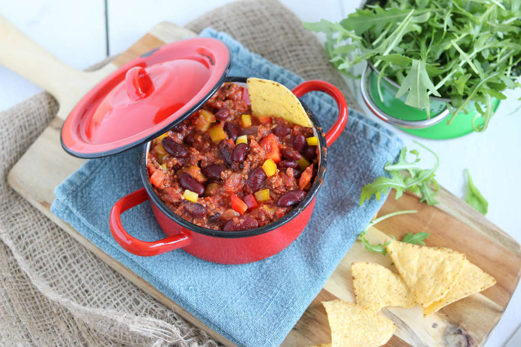 Dit chili con carne recept komt uit Happy Days met The Naked Chef uit 2001. Elke herfst / winter schuif ik deze pan een paar keer de oven in. De hoeveelheid is zeker groot genoeg om 2 keer van te eten. De andere helft gaat de vriezer in. Zo ben ik op een drukke dag snel klaar en zet ik dit gerecht in een handomdraai op tafel.