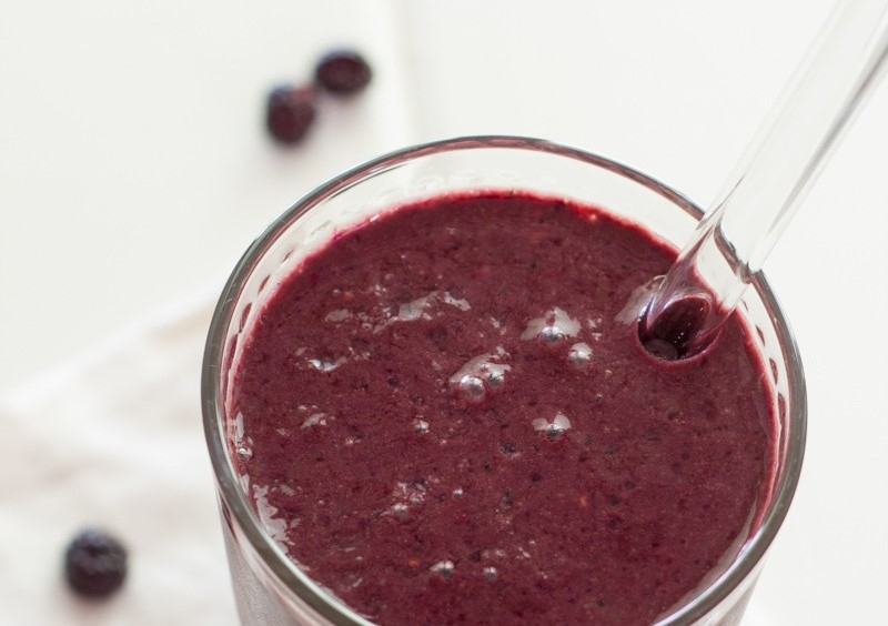Je begrijpt het al, alles in de blender en net zo lang op de knop drukken tot je een glad mengsel hebt! Dan kan je genieten van je chocolade bramensmoothie!