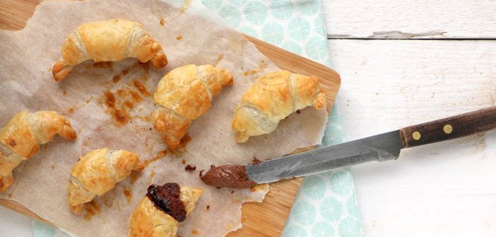 Afgelopen weekend gaf ik weer een workshop en was ik op zondag dus al redelijk bijtijds de deur uit, geen tijd voor het ontbijt thuis. En dat terwijl er wel croissantjes gerold zouden worden. Ik moest er ineens weer aan denken toen ik nog wat losse plakjes bladerdeeg tegenkwam in de vriezer, en combineerde dat met de grote liefde voor Nutella van de meiden - en van mezelf... Hier ga ik ze echt wel heel erg mee verwennen bij het Paasontbijt, maar ik denk dat ze ook in een ander weekend nog eens op tafel komen.