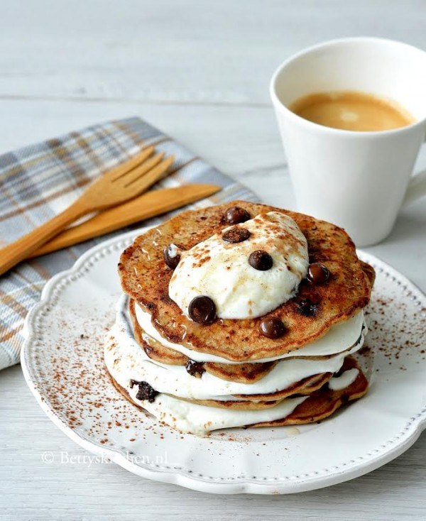 Door Betina Drost - hebben jullie al zin in het weekend? Ik wel, want dan staan deze chocolate chip pancakes met banana en kokos weer op het menu!