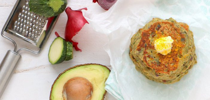 Het stond al een tijdje op mijn wensenlijstje om hartige pannenkoekjes te maken... Toen ik laatst mijn favoriete pannenkoekenrecepten (leuk woord voor Galgje) bij elkaar zocht, ontdekte ik namelijk dat er alleen maar zoete variaties op de blog staan. Nou komt dat misschien omdat ik een hartige pannenkoek al snel een wrap noem, en daar dan lekker veel groenten in stop, maar echte pannenkoeken kun je natuurlijk net zo goed met groenten bakken. Deze courgette pannenkoekjes met avocado zijn heerlijk fluffy, hartig, en ideaal als lunch!