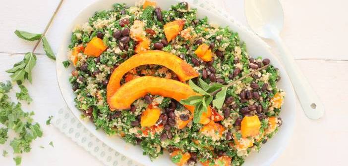 Alleen voor de groenten die bij dit seizoen horen zou het van mij nog wel heel lang winter mogen blijven... Ik hou ervan om stevige maaltijden op tafel te zetten, en daar zijn de wintergroenten natuurlijk perfect voor! Straks, als het weer wat warmer wordt, en weer langer licht is, dan ga ik vanzelf wel weer over op frisse salades en lichte maaltijden. Maar voor nu geniet ik maximaal van de knollen en kolen die bij deze donkere maanden horen. Ik ga de laatste weken ook echt door zo'n fase waarin ik steeds maar weer de boerenkool op tafel zet, elke keer op een andere manier klaar gemaakt. Verwacht dus een heleboel boerenkool recepten de komende weken... #oeps. Deze couscous met pompoen en boerenkool is ook echt zo'n stevige wintermaaltijd, die ik het liefst nog heel vaak klaar maak.
