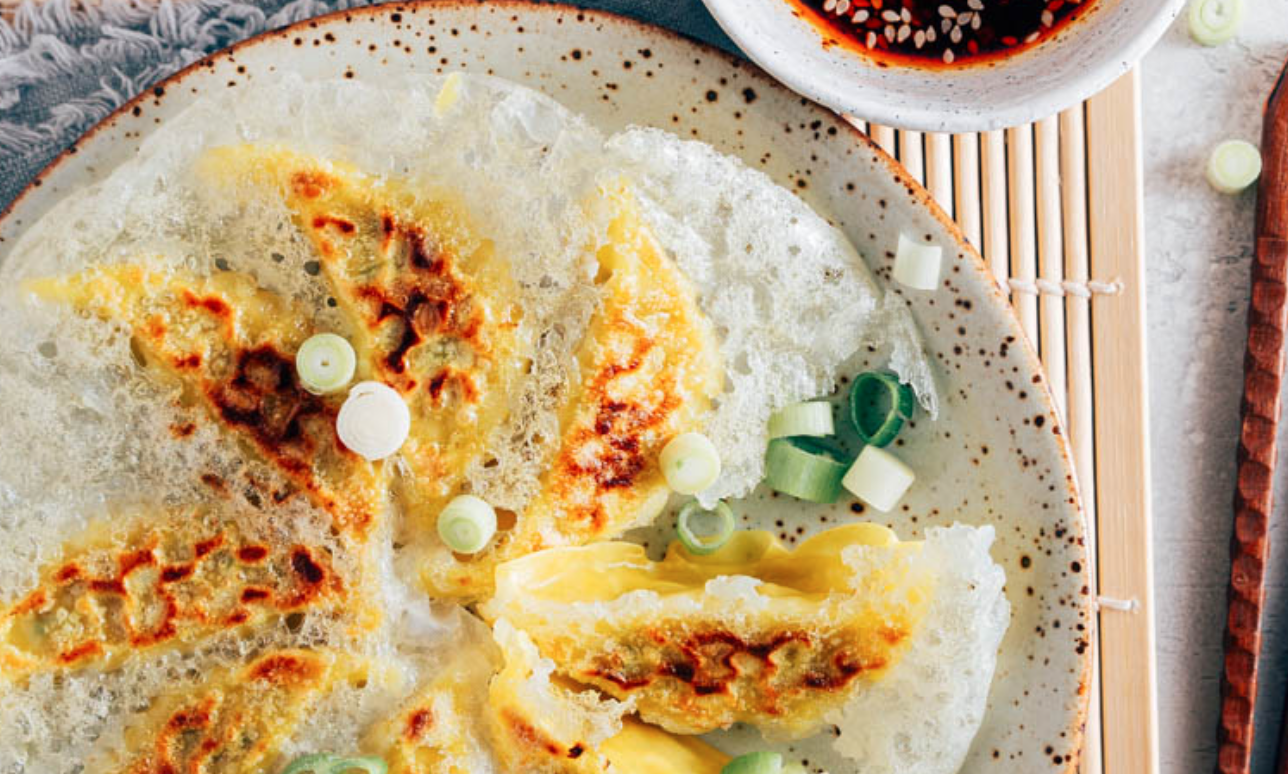 Crispy gyoza: we zagen deze in een video op social media en moesten het meteen proberen. Gyoza met een krokante laag eronder – ook wel een crispy skirt genoemd. Het ziet er spectaculair uit, maar is zó simpel om te maken. En je hoeft de gyoza niet eens te ontdooien: je kunt ze zo, rechtstreeks uit de vriezer, de pan in schuiven!
